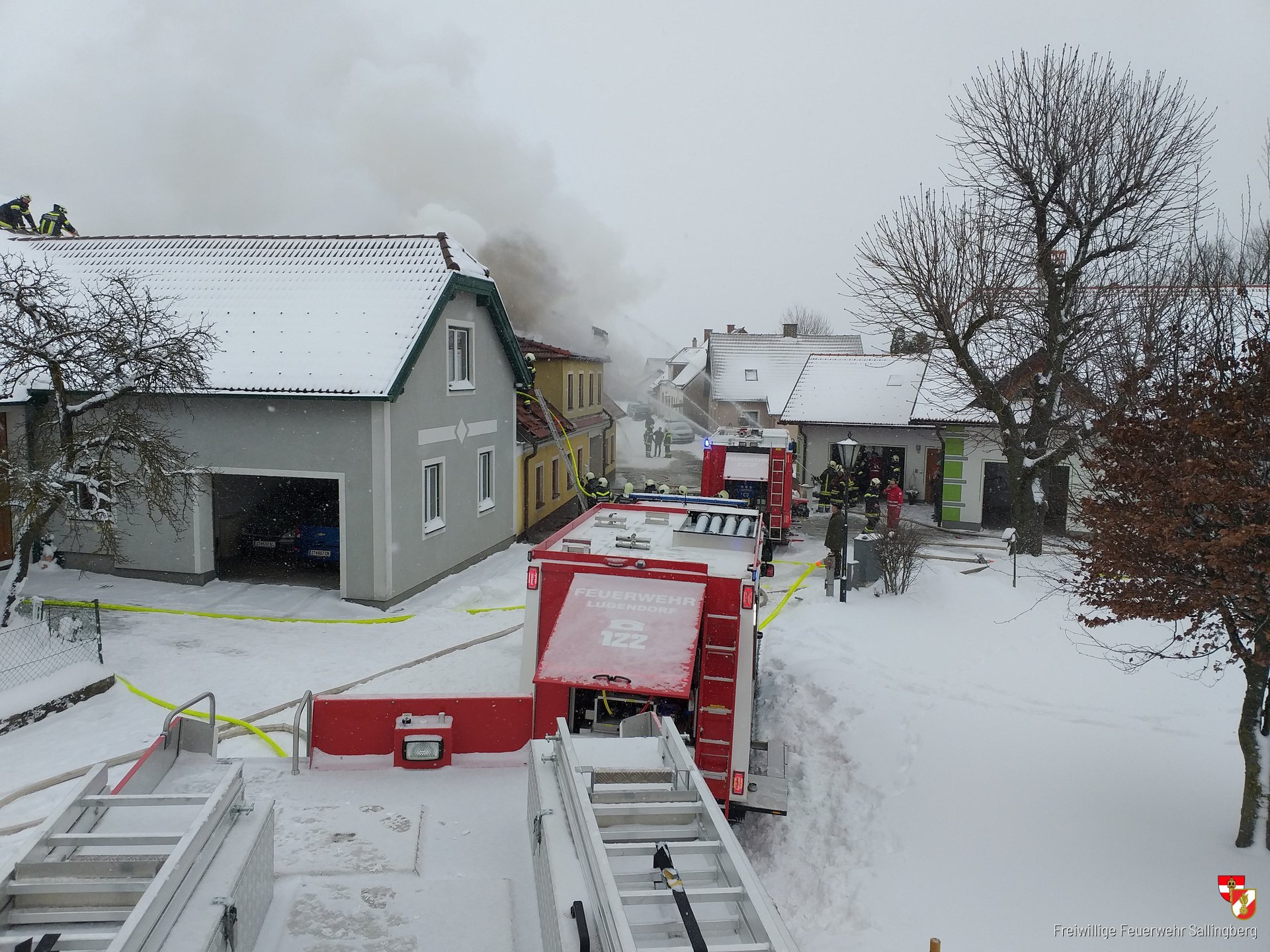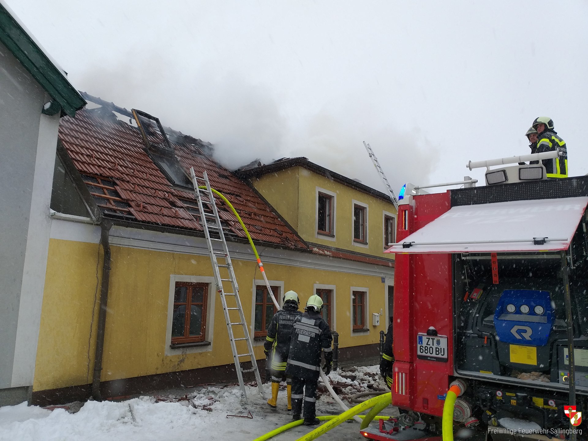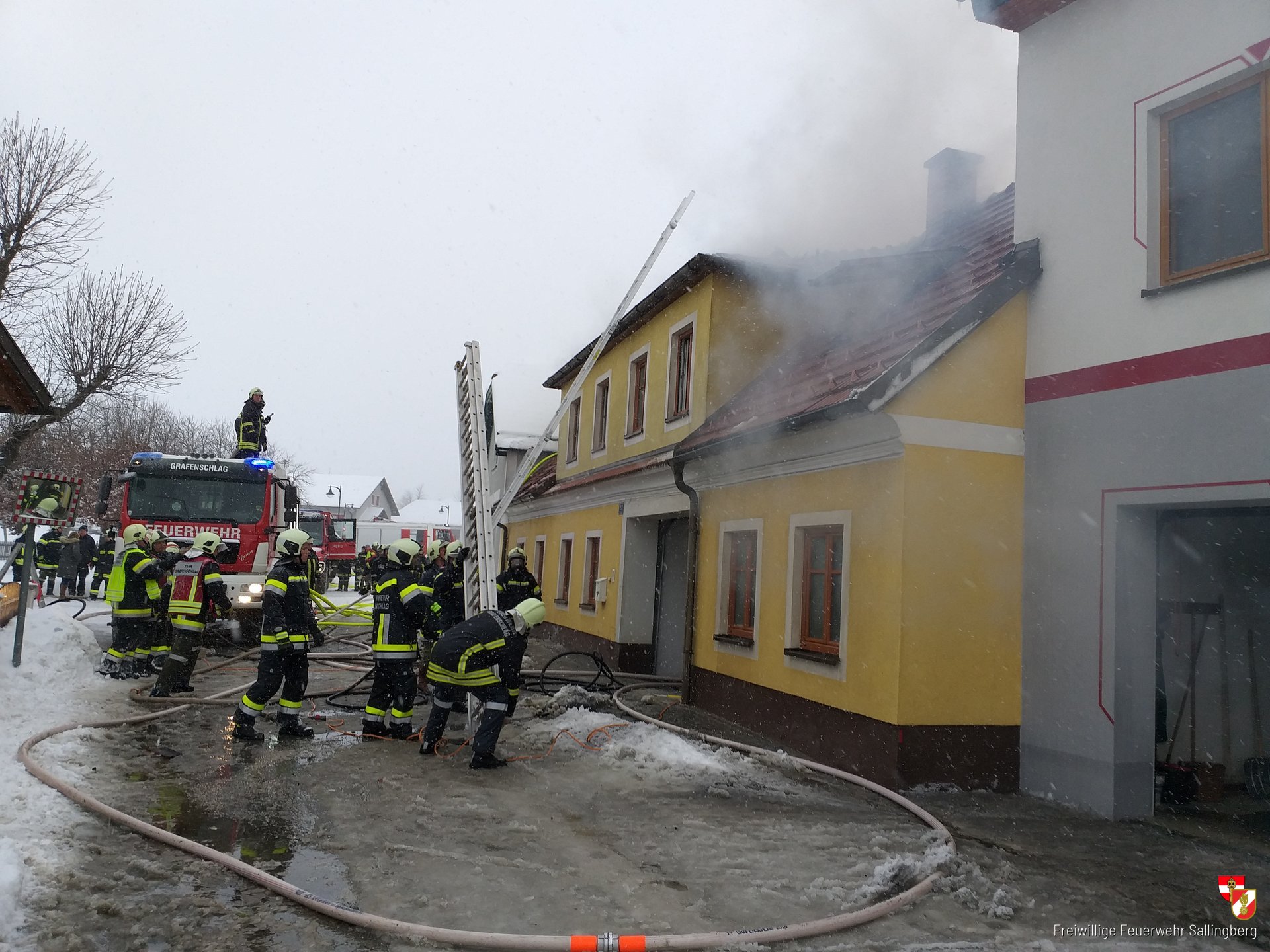 Die Feuerwehren Grafenschlag, Lugendorf, Ottenschlag, Bad Traunstein und Sallingberg führten gemeinsam die Löscharbeiten durch, dafür mussten zahlreiche Atemschutztrupps eingesetzt werden. Das winterliche Wetter erschwerte die Löscharbeiten der Einsatzkräfte.