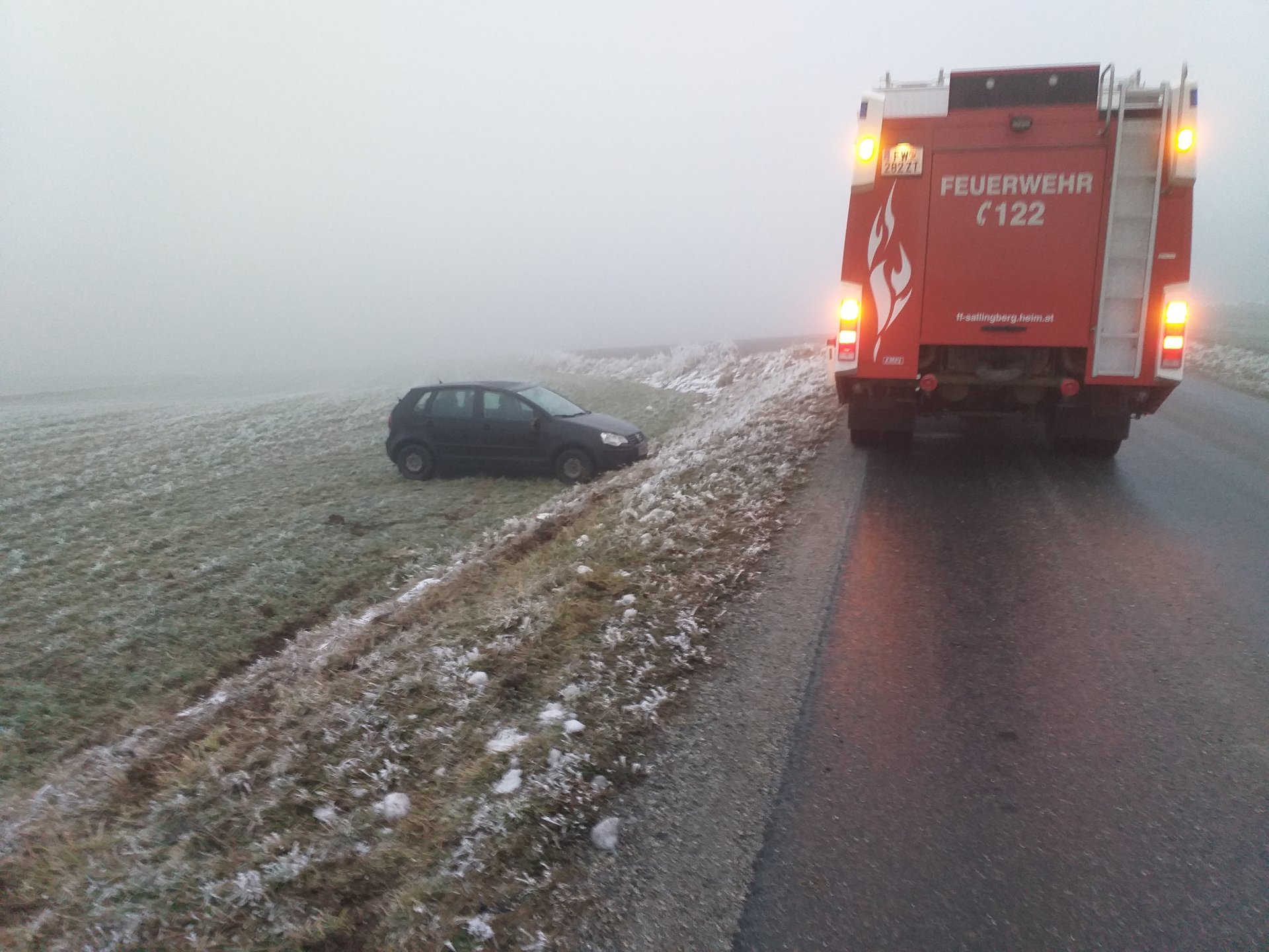 "Hier Florian NÖ, um 07.27, Fahrzeugberg für Sallingberg, Sallingberg Richtung Armschlag, Kilometer 0,8, PKW am Dach" mit diesen Alarmtext wurden wir am 17. Dezember 2020 von Florian Niederösterreich zu einen Einsatz alarmiert.