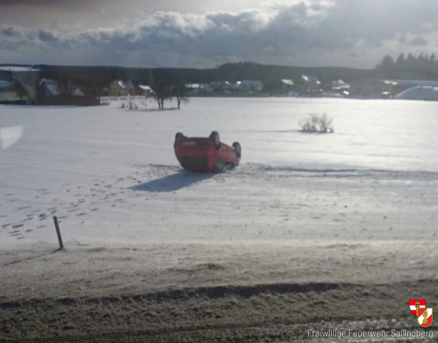 Unter der Leitung von Gruppenkommandant OLM Thomas Schierhuber rückten umgehend 10 Mitglieder der FF Sallingberg mit TLF-A 3000 zur Einsatzstelle auf der Landesstraße 76 Richtung Lugendorf aus. Nach Ankunft an der Einsatzstelle bot sich den Einsatzkräfte folgendes Bild, eine Streife der Polizei war bereits vor Ort, des weiteren lag ein Personenkraftwagen, der von der Fahrbahn abgekommen ist, auf dem Dach im angrenzenden Feld. Der Fahrzeuglenker befand sich beim eintreffen der Feuerwehr nicht mehr vor Ort.