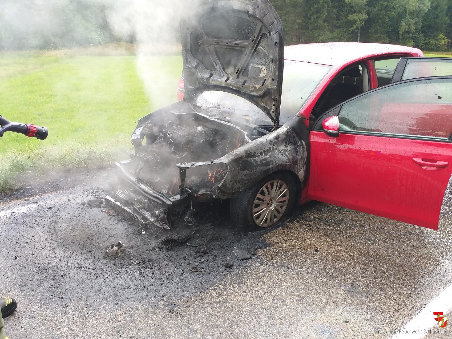 Auf der Heimfahrt von der KHD - Zugs Übung kam wir bei einen Fahrzeugbrand auf der Landesstraße 77 auf Höhe km 5,2 vorbei. Unsere Tätigkeit beschränkte sich aufs Absichern der Einsatzstelle und unterstützen der alarmierten Feuerwehren Grafenschlag, Lugendorf und Großweißenbach. Der Brand wurde durch die FF Altpölla gelöscht, die ebenfalls an der KHD Übung teilnahm und von diesen Einsatz Kenntnis nahm.