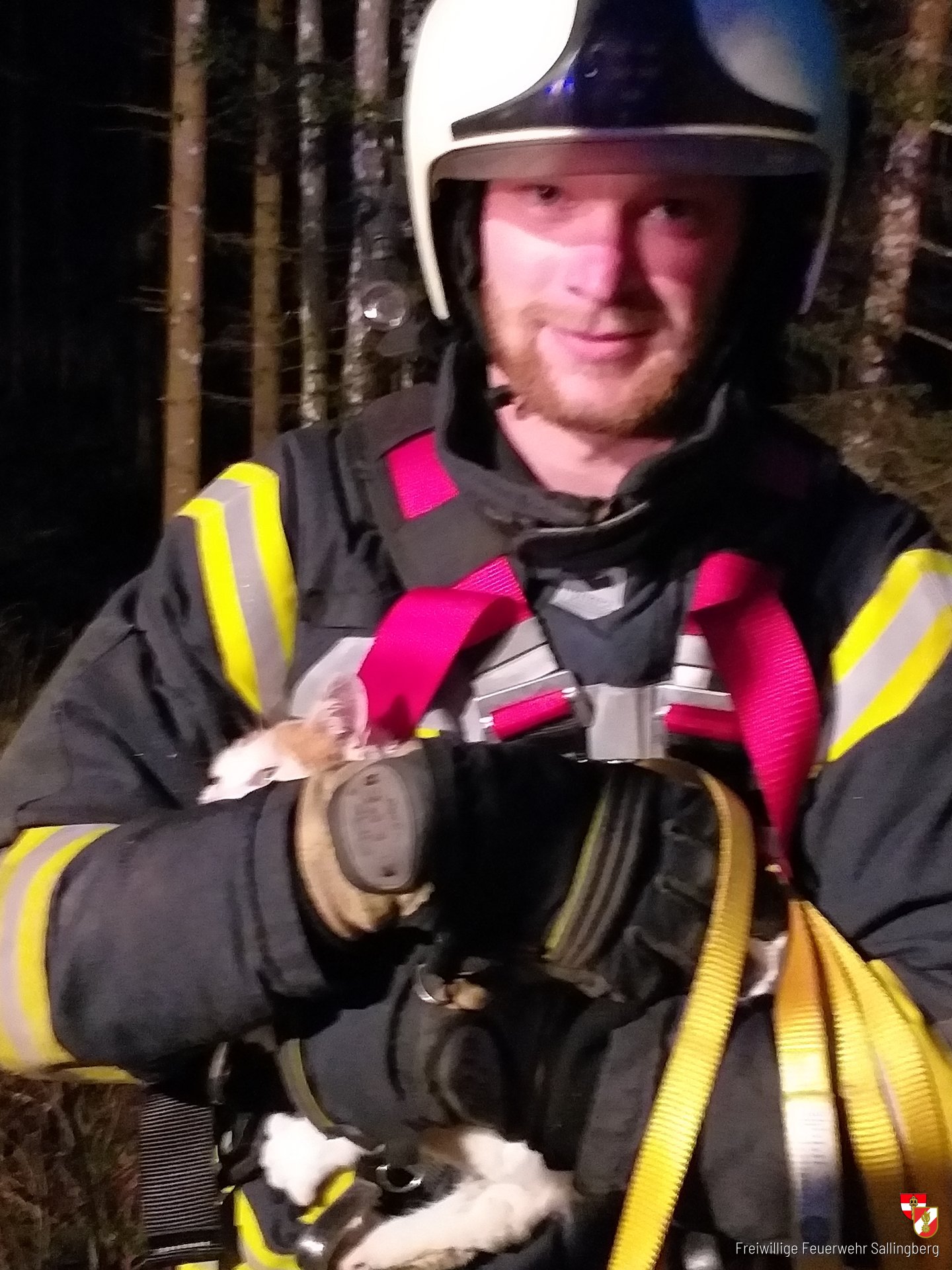 Unter der Führung von Feuerwehrkommandant OBI Christian Schulmeister rückten die Floriani's umgehend mit TLF-A 3000 und MTF-A zur Einsatzstelle, in der Katastralgemeinde Rabenhof Richtung Gotthartschlag, aus. Bei der Ankunft an der Einsatzstelle fanden die Einsatzkräfte eine Katze vor, die auf einer Astgabel in ca. 6m auf einen Baum befand.