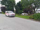 Zeitgleich mit der Feuerwehr traf der Rettungsdienst ein, dieser übernahm sofort die Versorgung des Unfalllenkers, die Aufgabe der Feuerwehr bestanden darin die Einsatzstelle abzusichern, ausgelaufenen Flüssigkeiten zu binden und nach der Unfallaufnahme durch die Polizei das Fahrzeug zu bergen. Das Fahrzeug wurde von uns aus dem Park geschoben und auf einer geeigneten Abstellfläche abgestellt.