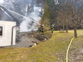 Bei der Ankunft der ersten Einsatzkräfte vor Ort, stand ein Wohnhaus mit angrenzender Scheune bereits in Vollbrand, der Brand drohte sich an den anschließenden Wald auszubreiten.