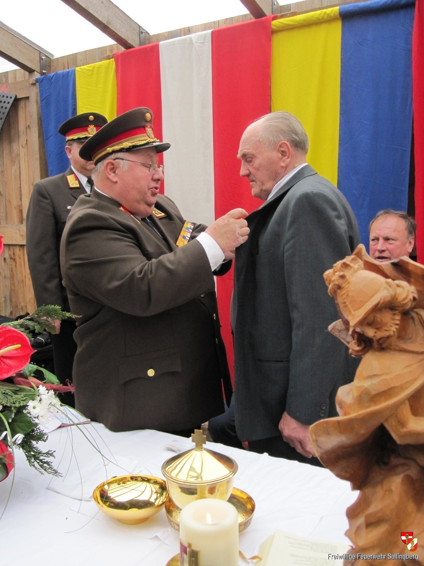Der Sonntag stand ganz im Zeichen der Segnung des neuen Tanklöschfahrzeuges. Die festliche Veranstaltung wurde mit einem Festgottesdienst begonnen, welcher von ELFKUR Engelbert Salzmann zelebriert wurde. Im Anschluss konnte Feuerwehrkommandant OBI Karl Schulmeister für den Festakt zahlreiche Ehrengäste begrüßen. Unter anderem konnte er die Landtagsabgeordneten Franz Mold und Benno Sulzberger, Bezirkshauptmann Michael Widermann, Bürgermeister Leopold Bock, Bezirksfeuerwehrkommandant OBR Gerwalt Brandstötter, das Abschnittsfeuerwehrkommando Ottenschlag an der Spitze BR Wilhelm Renner sowie weitere zahlreiche Feuerwehrfunktionäre, begrüßen. Auch konnte er AbtInsp. Wolfgang Spitaler der Polizeiinspektion Waldhausen sowie die Patinnen Anna Elisabeth Welt und Elvira Ottendorfer (beide neues TLFA), Maria Schulmeister (Tragkraftspritze) sowie Maria Göstl, Waltraud Spirk (beide Feuerwehrhaus) und Aloisa Waidhofer (altes TLF), herzlich willkommen heißen. Für eine festliche Umrahmung sorgte die Musikkappelle Sallingberg.