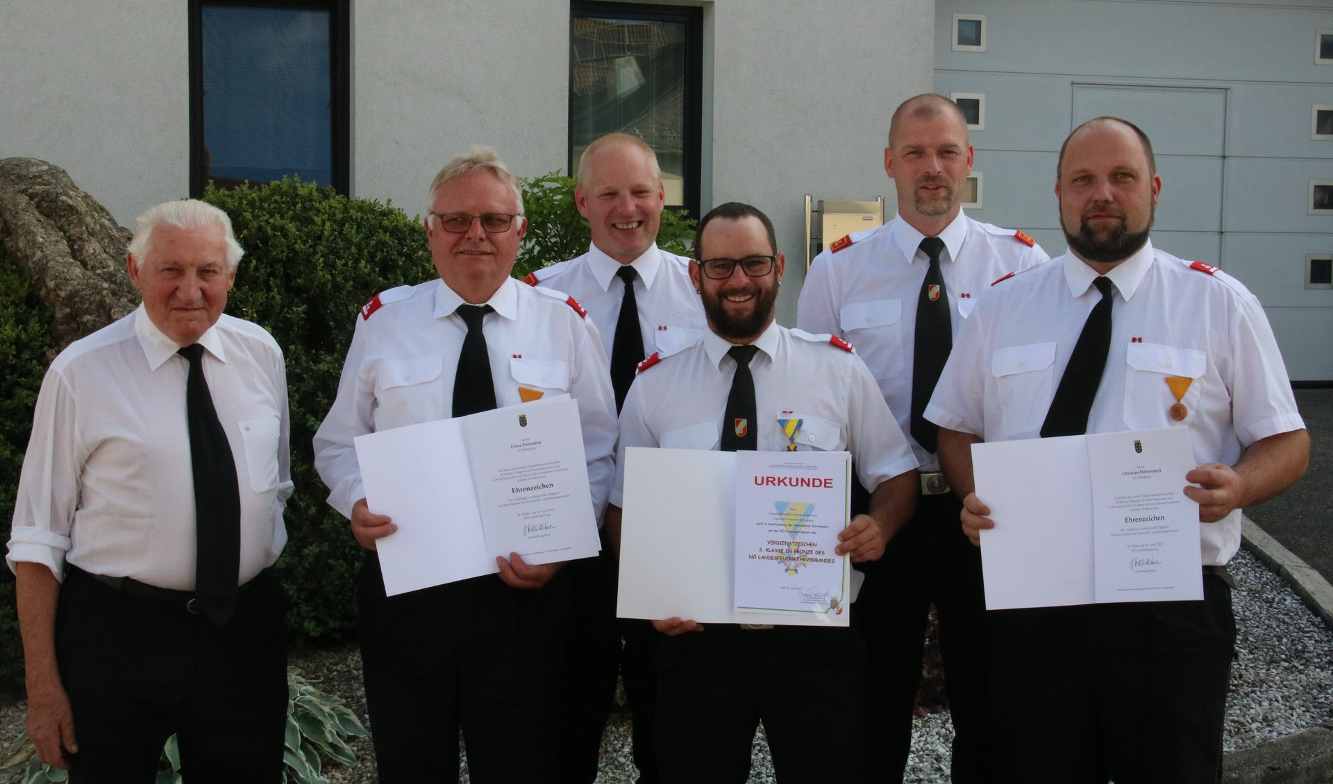 Im Rahmen dieser Veranstaltung wurde EHLM Franz Freistetter für seine 40-jährige Tätigkeit und HLM Christian Hebenstreit für seine 25-jährige Tätigkeit auf dem Gebiet der Feuerwehr- und Rettungswesen von Landtagsabgeorndten Franz Mold in Vertretung der Frau Landehauptfrau ausgezeichnet. HLM Thomas Schierhuber erhielt für seine Leistung das Verdienstzeichen 3. Klasse des NÖ Landesfeuerwehrverbandes von LFR Erich Dangl überreicht.