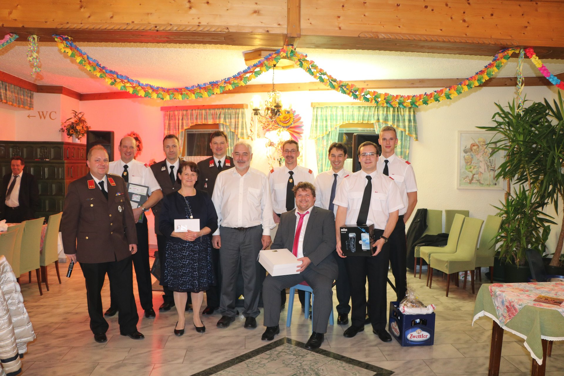 Beim diesjährigen Schätzspiel galt es die eingefüllte Wassermenge in einen Feuerlöscher in Milliliter zu erraten. Um Mitternacht wurden der Feuerwehrlöscher geöffnet und unter Aufsicht von Gerald Holzinger (Kommandant der FF Lugendorf) die Wassermenge bestimmt und er verkündete das 3.673 ml im Feuerlöscher befanden. Anschließend konnten von Feuerwehrkommandanten OBI Gerhard Freistetter die Schätzmeister gekürt werden. Den ersten Platz belegte Harald Bernhard (Lugendorf, -1 und Platz drei mit +17), zweite wurde Gerald Holzinger (Lugendorf, -4). Die weiteren Plätze gingen an Wolfgang Weidenauer (Moniholz, -20), Fabian Waglechner (Grainbrunn, -23), Silvester Führer (Spielleithen, +37), Harald Tiefenbacher (Grainbrunn, +40), Renate Schnaitt (Voitschlag, +44) und Regina Lorenz (Voitschlag, +50). Ein Dank an das Team des Gasthauses Welt für die hervorragende Bewirtung sowie der exzellenten Zusammenarbeit durfte zum Schluss nicht fehlen.