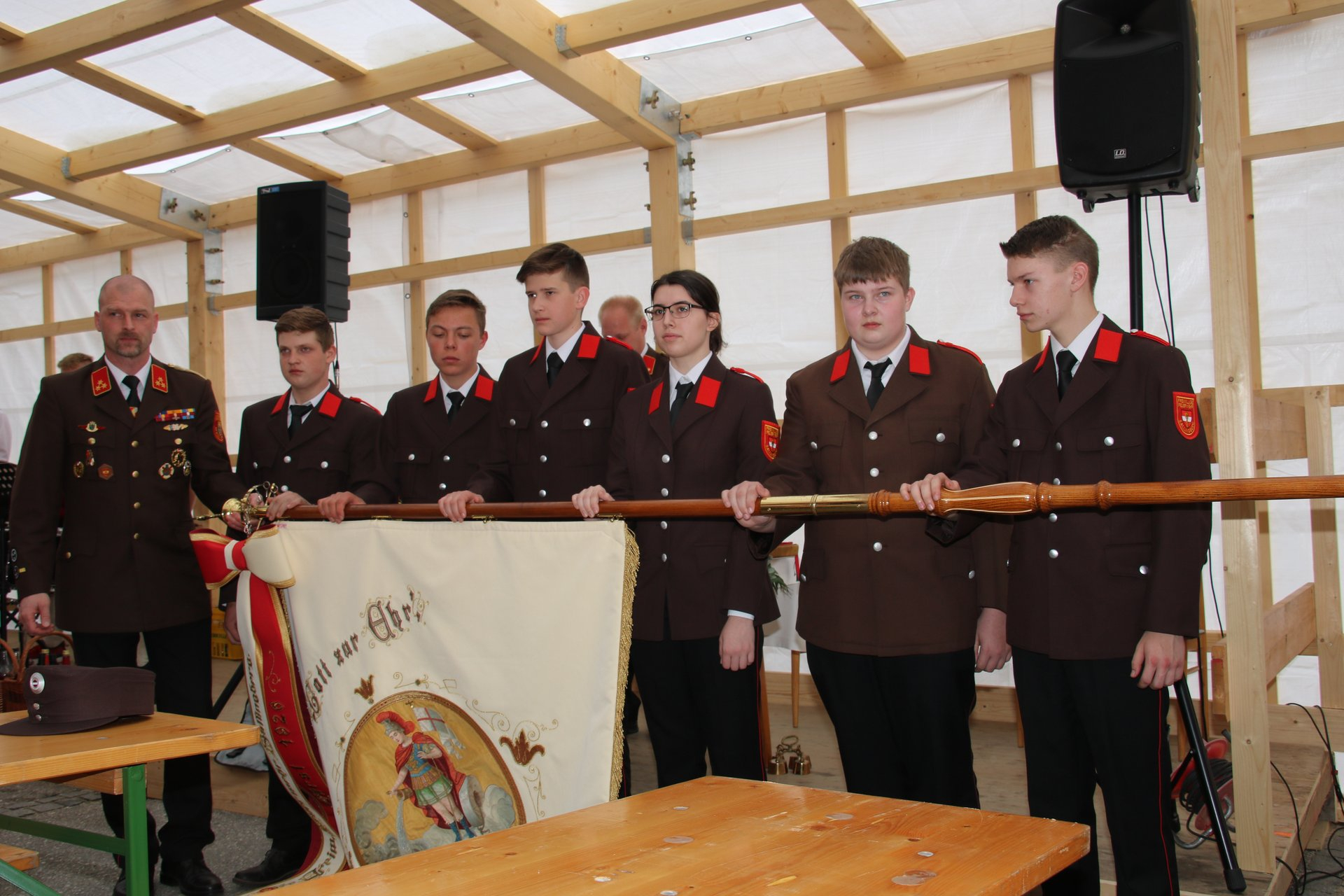 Der Sonntag wurde mit der Florianimesse zelebriert von Pfarrer Peter Rückl und Diakon Hermann Dornhackl begonnen. Im Anschluss an die Messe wurden die Jungfeuerwerhmitglieder Maximilian Dorfbauer, Julian Fichtinger, Julian Honeder, Lukas Schiller, Kimberly Schulmeister und Jonas Weinmann durch den Feuerwehrkommandanten Christian Schulmeister angelobt.