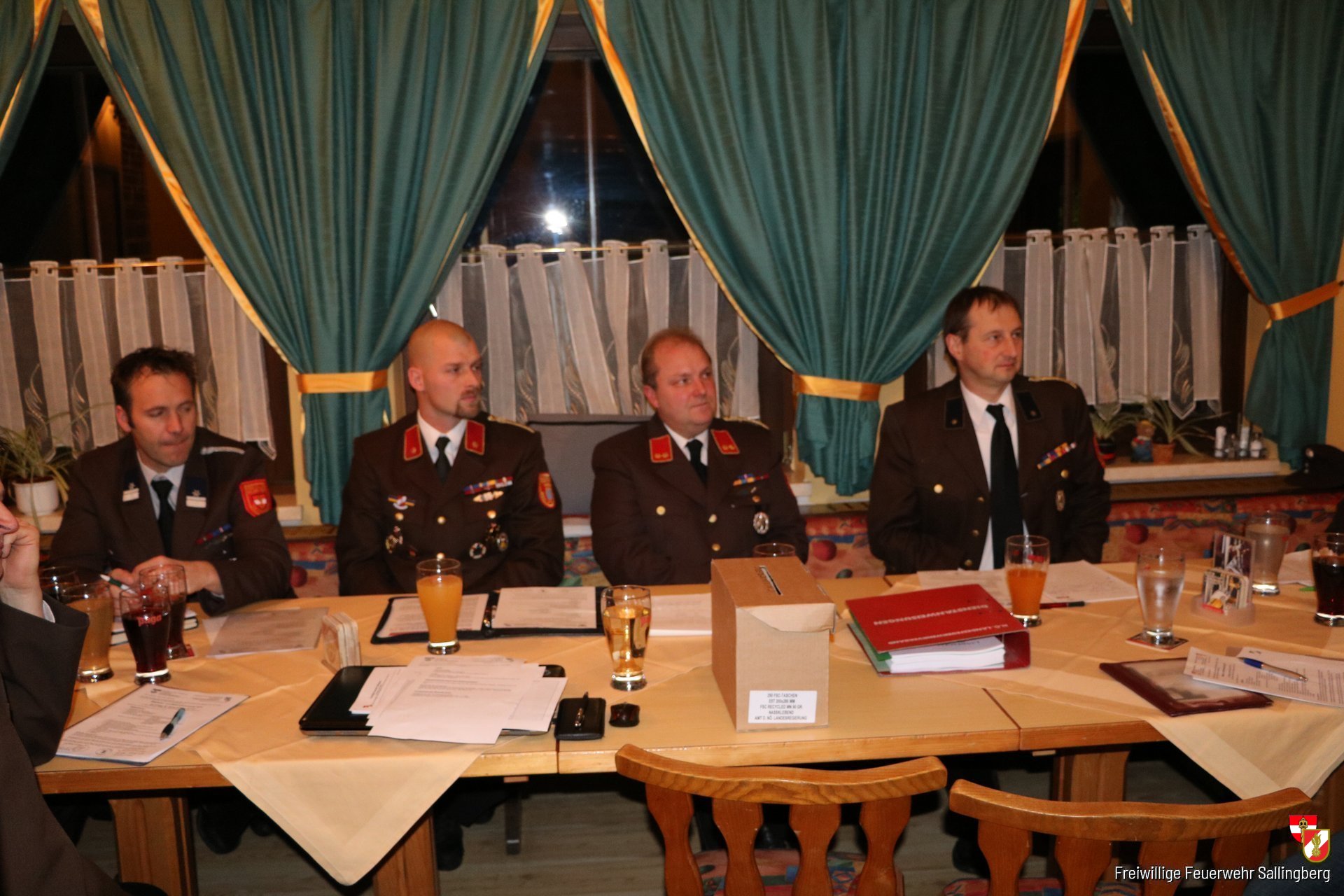 Nach einer Gedenkminute für die verstorbenen Mitglieder EHLM Emmerich Göstl und EOBI Karl Schulmeister, die beide am 28. November 2015 verstarben, folgten die Berichte der Fachchargen und Sachbearbeiter über die Ereignisse 2015. Zeugmeister LM Alois Schütz konnte dabei über die Anschaffung von neuen Schutzjacken für einen Teil der Mannschaft berichten. Das gemeinsame Ablegen der Ausbildungsprüfung „Technischer Einsatz“ mit den Feuerwehren Grafenschlag und Lugendorf hob Ausbilder HBM Christian Schulmeister bei seinen Bericht hervor. Dabei erhielt FM Florian Schierhuber das Abzeichen in Bronze. Der Sachbearbeiter für Nachrichtendienst OLM Peter Weinmann konnte über den Erwerb des Funkleistungsabzeichen NÖ von den Mitglieder FM Christoph Jungherr, LM Thomas Schierhuber, FM Lukas Schulmeister und seiner Person in der niederösterreichischen Landesfeuerwehrschule berichten. BI Paul Schulmeister (Sachbearbeiter für Wasserdienst) konnte auf mehrere Höhepunkte im Jahr 2015 zurückblicken. Beim oberösterreichischen Landeswasserwehrleistungsbewerb in Überackern konnte FM Lukas Schulmeister das Wasserwehrleistungsabzeichen in Silber im Empfang nehmen. Beim 4. Bezirkswasserdienstleistungsbewerb des Bezirks Zwettl Anfang August in Ottenschlag konnten die Zillenfahrer neben zahlreiche Pokale in Zillen – Einer und Zweier erstmals den Pokal für den ersten Platz in der Mannschaftswertung im Empfang nehmen. Die Sallingberger Zillenfahrer konnten erstmals eine Mannschaft bei einem Wasserdienstleistungsbewerb stellen. Mehrere Leistungsabzeichen konnten von den Zillenfahrer beim niederösterreichischen Landeswasserdienstleistungsbewerb in Mauternbach erreicht werden. FM Christoph Jungherr erhielt das Wasserdienstleistungsabzeichen in Bronze und die Brüder HBM Christian Schulmeister und FM Lukas Schulmeister konnten nach intensiver Vorbereitung das Wasserdienstleistungsabzeichen in Gold von Landesfeuerwehrkommandant LBD Dietmar Fahrafellner in Empfang nehmen.