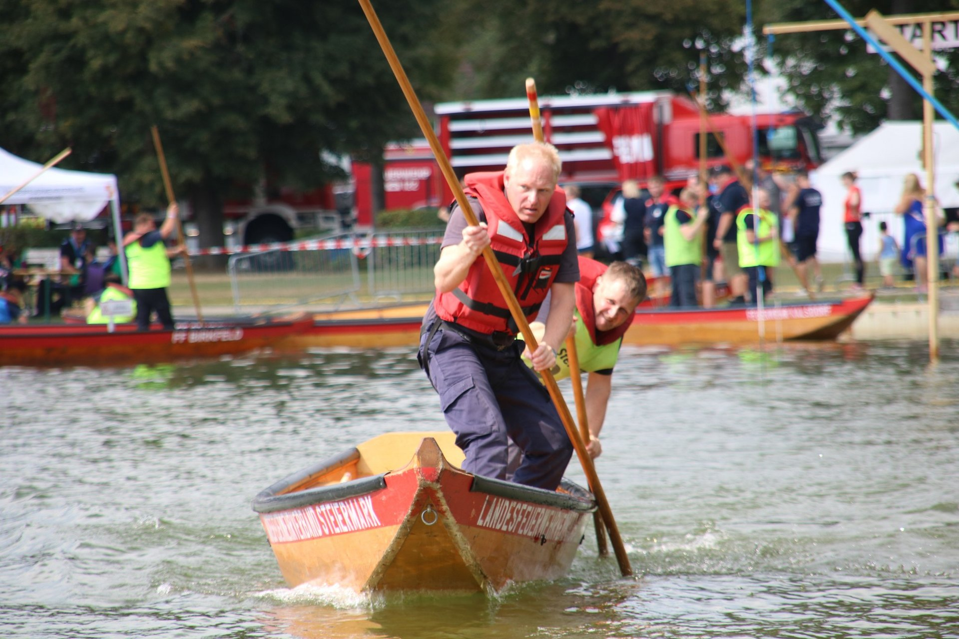 Besonders gut erwischte es am ersten Bewerbstag Christian Schmidt der FF Großnondorf. Nach entschlossenem Kampf und „harten Ruderschlägen“ konnte er nicht nur in der Disziplin Gold Zillenfahren den 3. Platz erreichen, sondern auch den 2. Platz in der Disziplin Zillen Einer Meister A feiern.