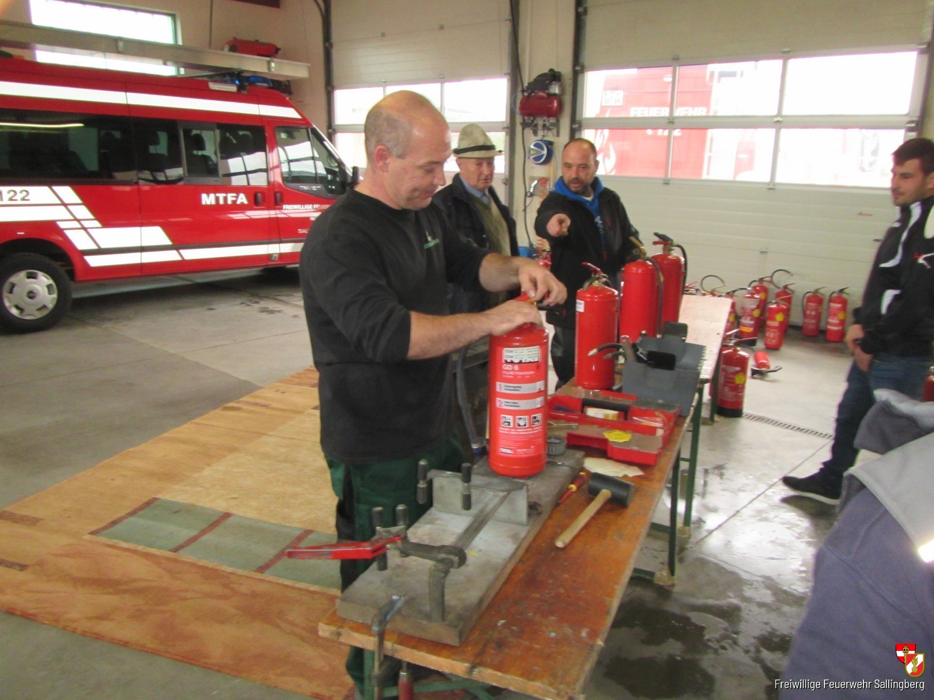 Die Freiwillige Feuerwehr Sallingberg bot gemeinsam mit dem Rauchfangkehrer Betrieb "Schmutz macht Sauber" (Übernahme des Kehrgebietes von Rauchfangkehrer Krivetz) am 7. November die Überprüfung der tragbaren Feuerlöscher, an. Über 50 Personen nutzten die Gelegenheit um die Funktionalität ihres Löschgerätes überprüfen zu lassen. Die Mitarbeiter des Rauchfangkehrer Betriebes hatten am Samstagvormittag alle Hände voll zu tun, um alle Löscher zu prüfen.