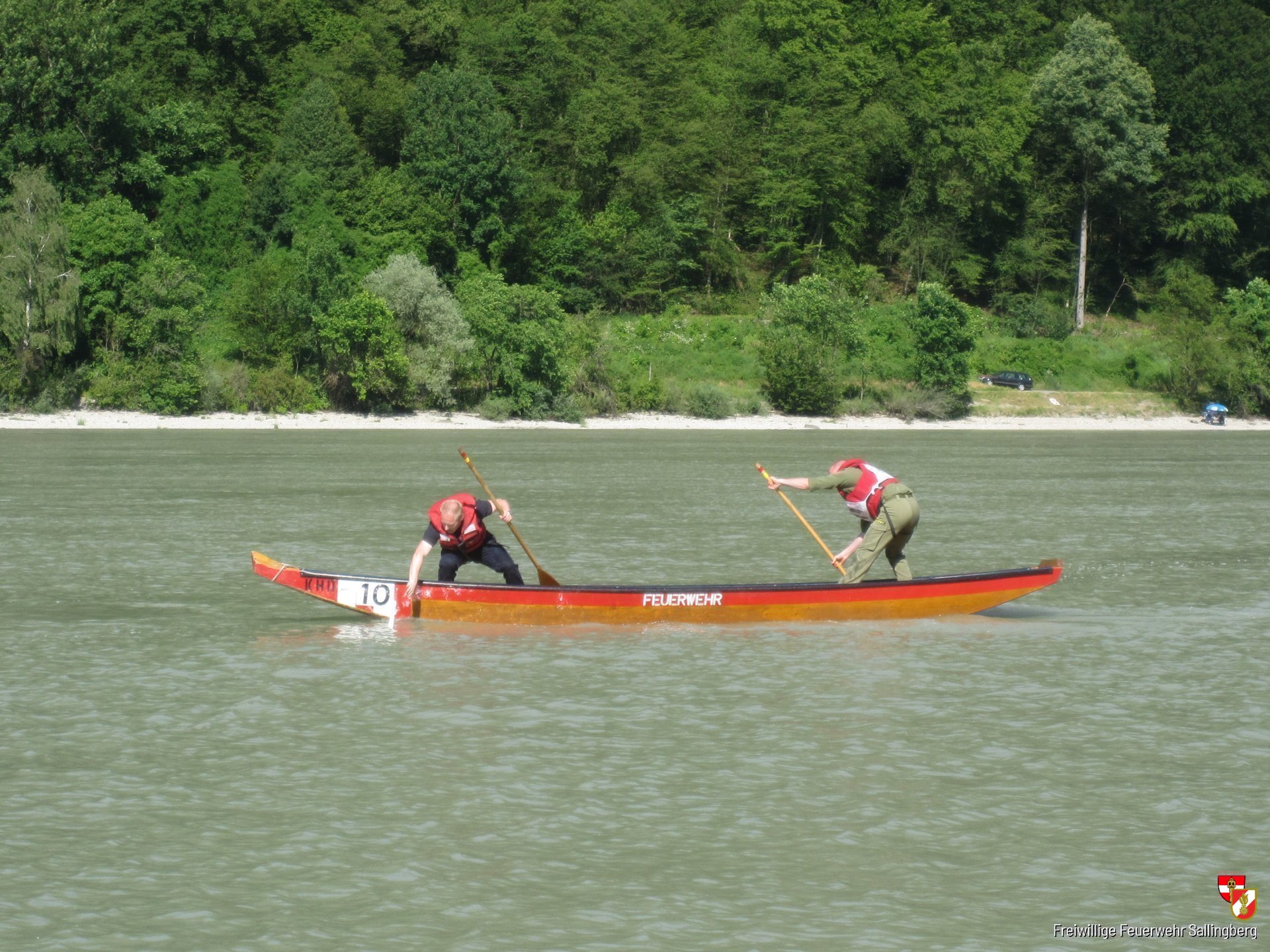 Neben unseren bereits routinierten Zillenfahrern BI Paul Schulmeister, HBM Christian Schulmeister und OFM Karin Freistetter (alle FF Sallingberg), sowie BI Peter Schulmeister ruderte OFM Christian Schmidt (beide FF Großnondorf) um eines der begehrten Wasserwehrleistungsabzeichen in Bronze.