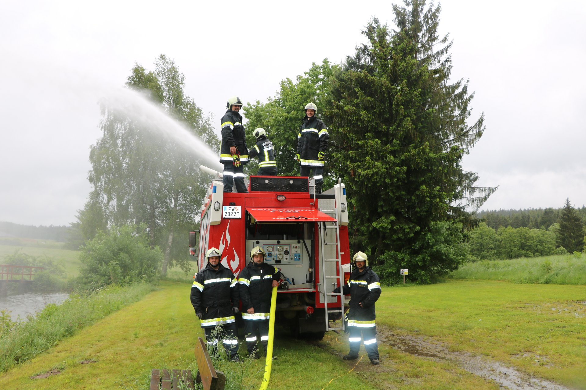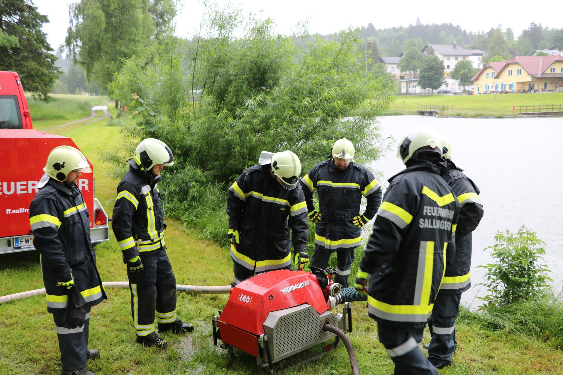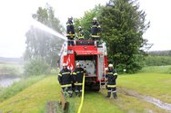 Am Samstag, den 20. Juni, hieß es das gelernte in der Praxis umzusetzen. Als erstes wurde mit der Tragkraftspritze des Tragkraftspritzenanhänger an den verschiedenen Wasserentnahmestellen in Einsatzbereich der FF Sallingberg begonnen Löschwasser zu fördern und über einen selbst gebauten "Wasserwerfer" wieder abzugeben. Anschließend wurden die motorbetriebnen Geräte des Tanklöschfahrzeuges erklärt beziehungsweise gleich beübt. Dabei wurde mittels Unterwasserpumpe eine Selbstversorgung des Tanklöschfahrzeuges aufgebaut und das Wasser mittels Wasserwerfer (des TLF´s) wieder abgegeben. Als nächstes arbeiteten die Teilnehmer mit der Seilwinde, dabei wurden die Sicherheitsabstände besprochen, um die Last einmal direkt angeschlagen und einmal mit einer losen Rolle (einscheren) angeschlagen zu ziehen.