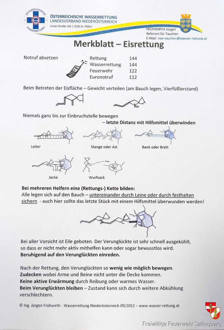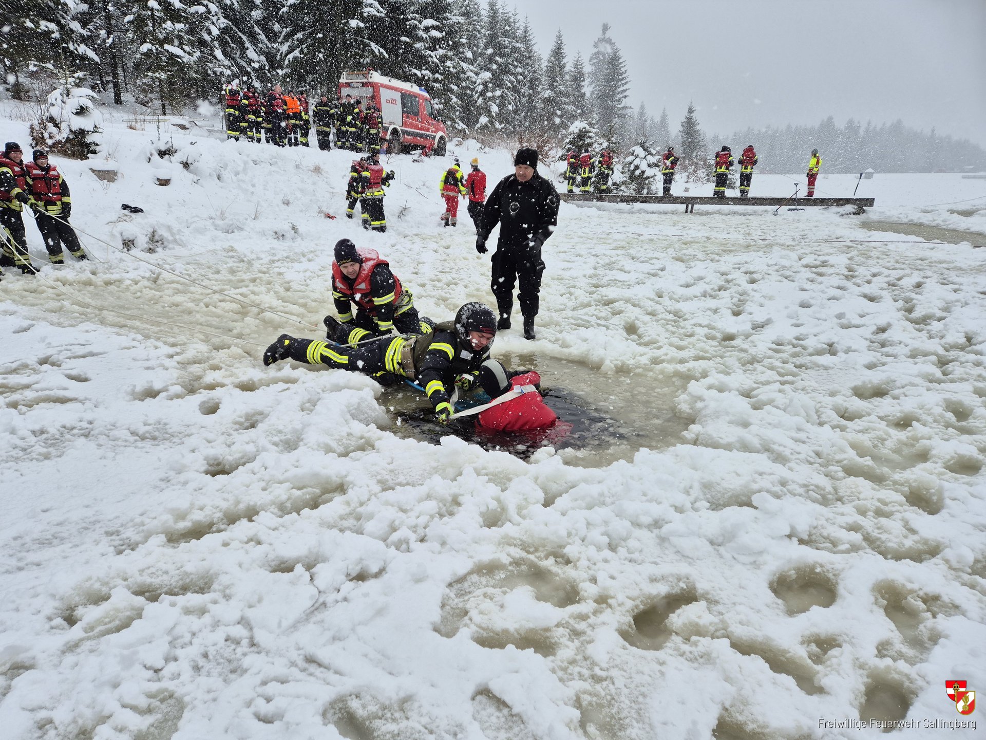 Am 21. Februar 2026 nahmen zwölf Mitglieder der Freiwilligen Feuerwehr Sallingberg am Eisrettungsworkshop des Abschnittsfeuerwehrkommando Ottenschlag am Schlesingerteich bei Bärnkopf teil. Zunächst wurden im Feuerwehrhaus Gutenbrunn die Einsatztaktischen Vorgehensweisen und speziellen Erste Hilfemaßnahmen bei „starken Unterkühlungen“ gelehrt.