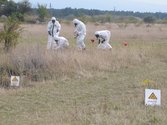 Bei dieser Station wurde die Probenahme (Bewuchs-, Boden- und Wischprobe) beübt. Im Anschluss daran wurden die kontaminierten Strahlenspürer in der Dekontaminationsstraße des österr. Bundesherres, sowie der Feuerwehr, dekontaminiert.