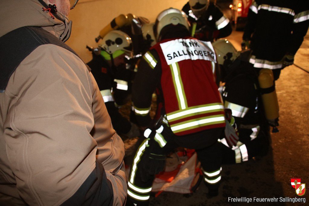 Am 22.11.2024 fand eine Übung der Freiwilligen Feuerwehr Sallingberg in einer Tischlerei in Kleinhauslau statt. Bei Instandsetzungsarbeiten brach ein Brand im Heizraum aus, und es wurden zwei Personen vermisst. Die Übungsannahme umfasste die Zusammenarbeit mit den Feuerwehren Grafenschlag und Lugendorf. Beim Eintreffen der FF Sallingberg informierte der Besitzer den Einsatzleiter über die Lage.
