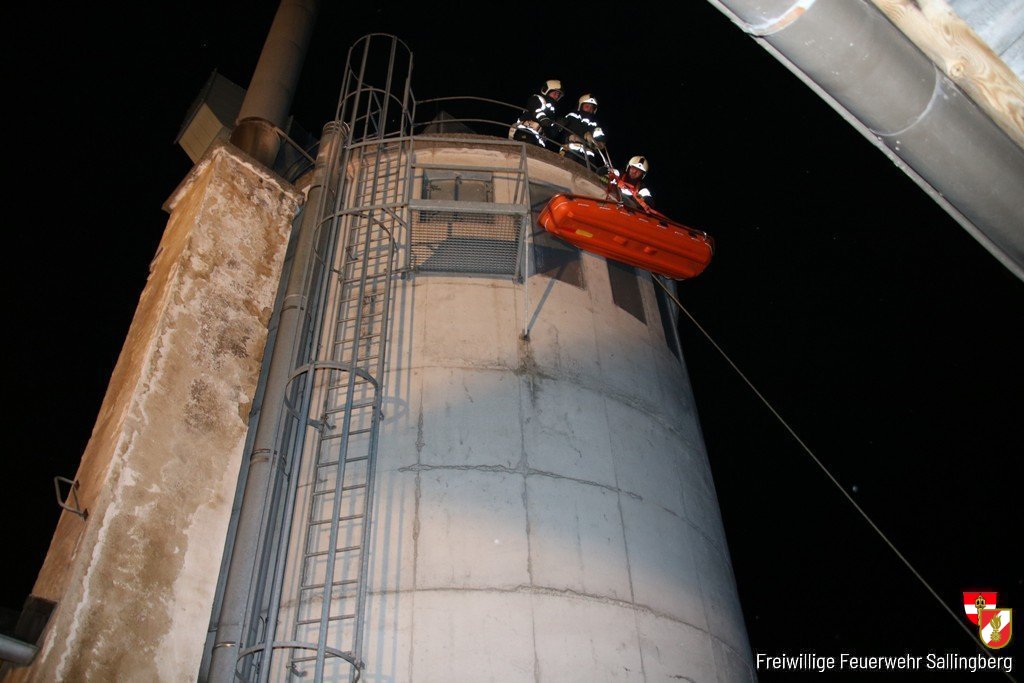 Atemschutztrupps führten die Menschenrettung aus der Tischlerwerkstätte durch und bekämpften den Brand im Heizraum. Eine weitere Person wurde auf einem Sägespännesilo gefunden und mit einer Korbtrage abgeseilt. Der Atemluftkompressor der FF Ottenschlag füllte die Pressluftflaschen auf. Abschnittsfeuerwehrkommandant Franz Steininger und Unterabschnittskommandant Norbert Klaffl (FF Purk) überzeugten sich von der guten Arbeit der Einsatzkräfte. Vizebürgermeisterin Cornelia Juster lobte den guten Ausbildungsstand. Nach der Übung gab es eine Jause im Gasthaus Welt. Dank geht an Markus Lindenbauer für die zur Verfügungstellung des Übungsobjektes und an die Marktgemeinde Sallingberg für die Jause.