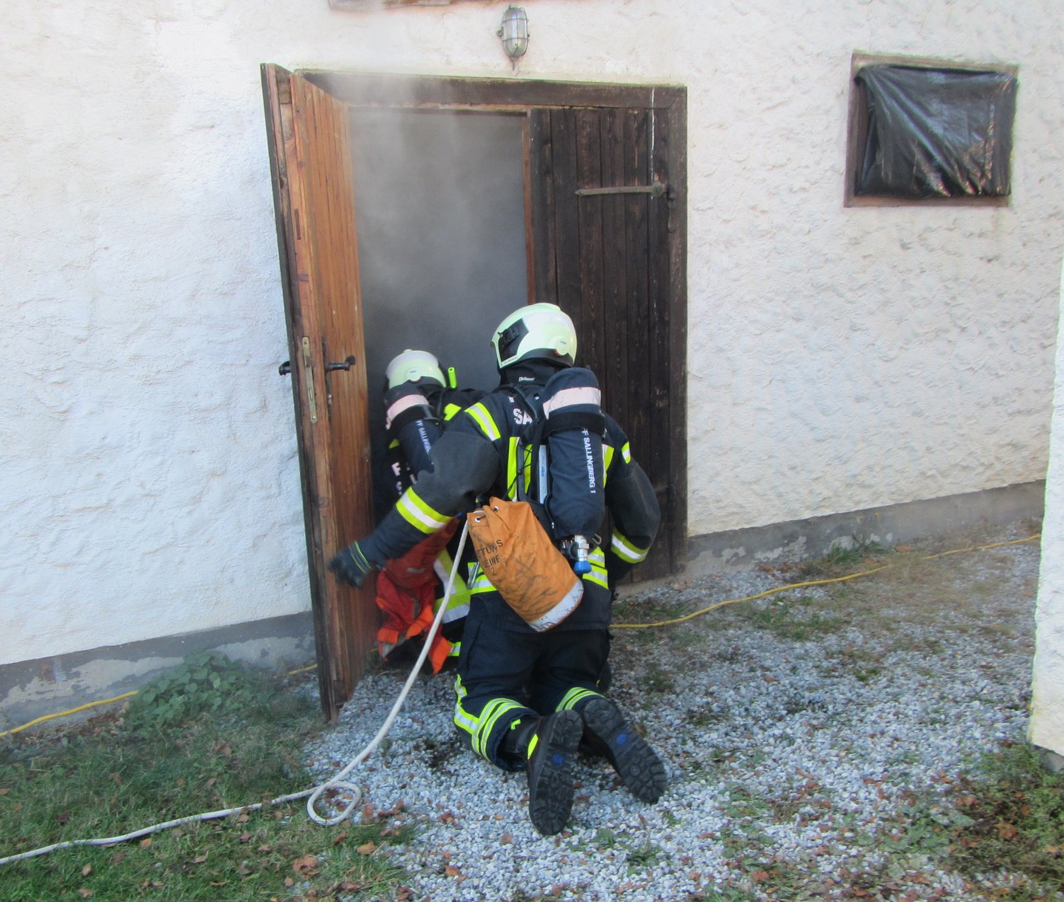 Station 1: Menschen Rettung aus einen verrauchten Raum mit schweren Atemschutz.