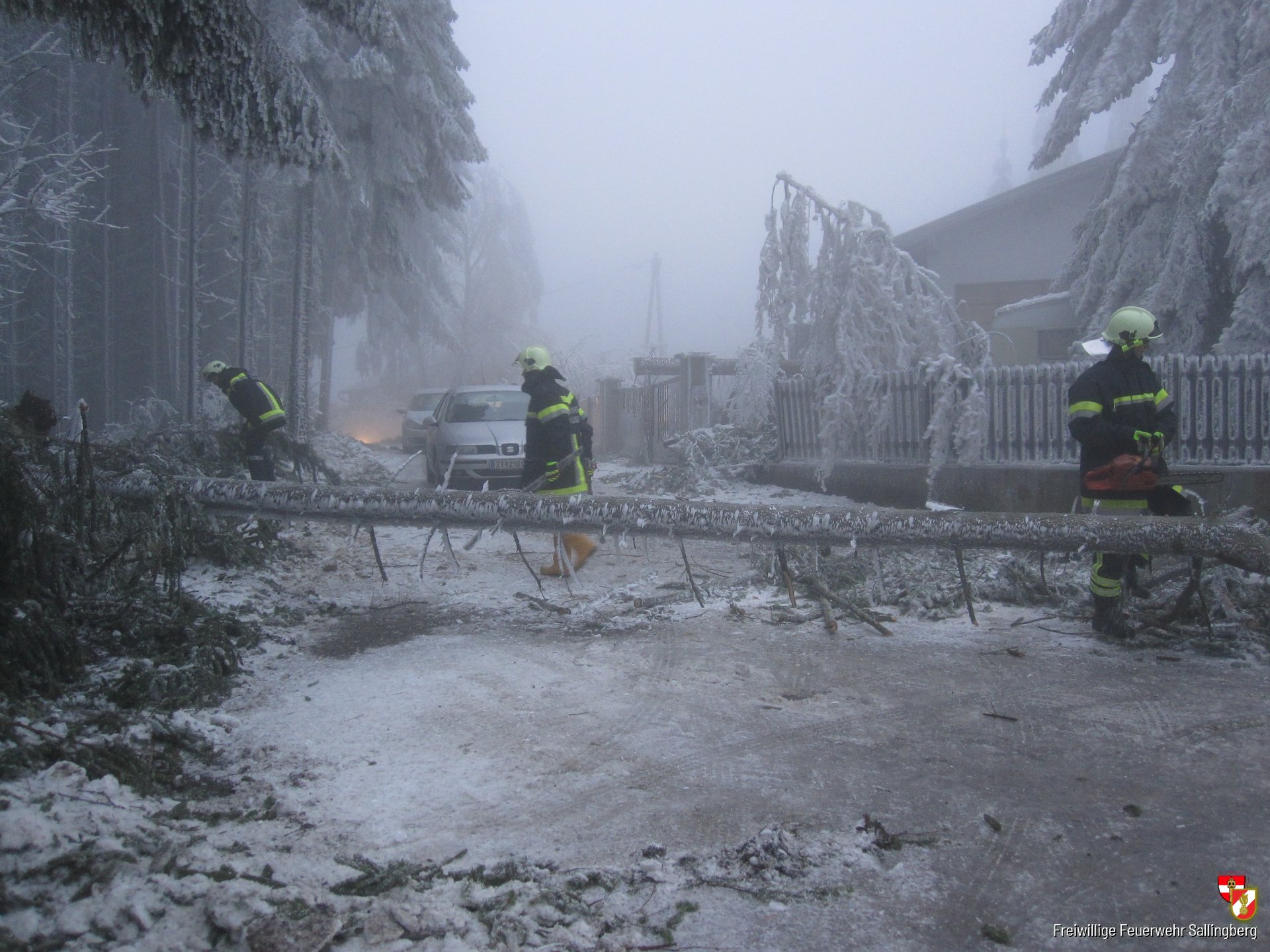 Auch am 3. Dezember wurden die Mitglieder der Freiwilligen Feuerwehr Sallingberg zu Einsätzen mit umgestürzten Bäumen bzw. Baum droht auf Haus zu fallen, gerufen.