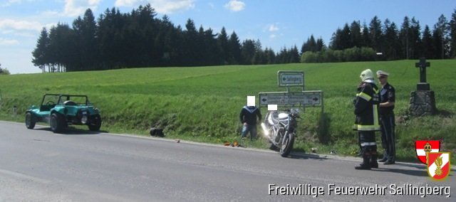 Am 9. Mai 2013, gegen 14.05 Uhr, lenkte eine 36-Jährige aus dem Bezirk Zwettl einen Pkw auf der Landesstraße 76 im Gemeindegebiet von Sallingberg, von Richtung Voitschlag kommend in Richtung Sallingberg. Auf der Kreuzung mit der Landesstraße 8273 wollte sie in diese nach links in Richtung Sallingberg einbiegen und musste das Fahrzeug verkehrsbedingt anhalten. Zur gleichen Zeit lenkte ein 22-Jähriger aus Krems ein Motorrad hinter dem Pkw und stieß mit dem Vorderrad gegen das Heck des Pkw. Der Motorradfahrer kam zu Sturz und wurde mit Verletzungen unbestimmten Grades mit der Rettung in das Landesklinikum Zwettl verbracht.