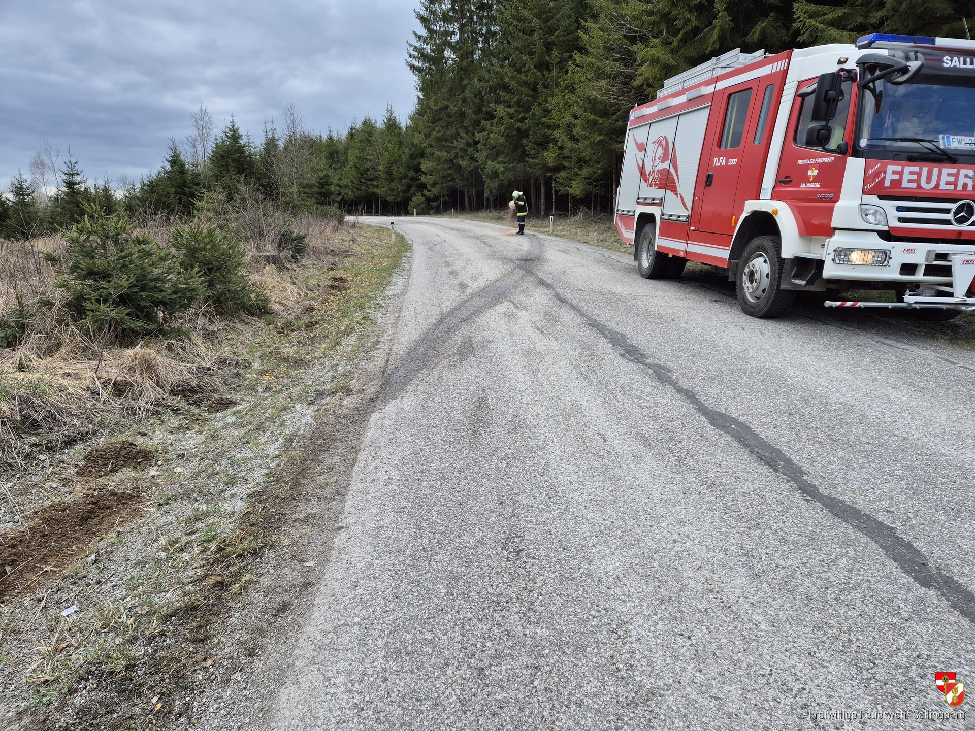 Am 03.04.2026 wurde die Freiwillige Feuerwehr Sallingberg zu einem Einsatz auf der Landesstraße zwischen Kleinhaslau und Voitschlag gerufen. Nach einem Verkehrsunfall waren Betriebsmittel auf die Fahrbahn ausgelaufen, die beseitigt werden mussten.