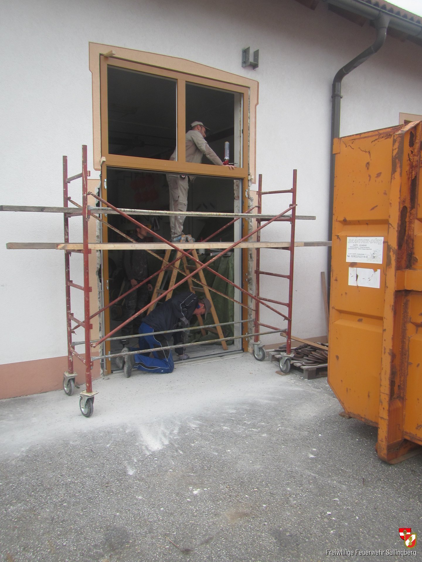 Beim Bau des Feuerwehrhauses wurden in der Fahrzeughalle eine kostengünstige Variante für die Belichtungselemente eingebaut. Die Anschlussfugen an die Wand bzw. mehre Dichtfugen im Fenster sind im Laufe der Jahre undicht geworden und das abfließende Wasser drang dadurch in die Außenwand ein. Um den Bausubstanz entsprechend zu erhalten entschlossen sich die Mitglieder die Fenster in der Fahrzeughalle zu tauschen und anschließend die Wände neu zu streichen.