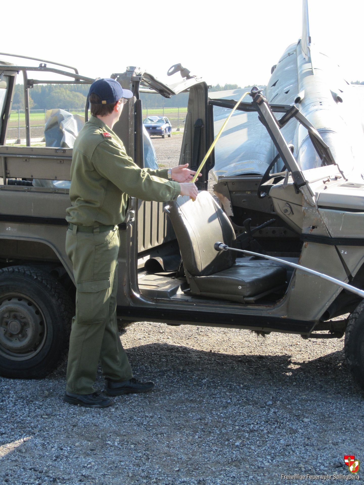 Der Brandübungsplatz der Bundesheer-Flughafenfeuerwehren bot eine spektakuläre Lagedarstellung. So war die Strahlenquelle in einem Saab Draken untergebracht, wobei eine dementsprechende Absicherung durchgeführt werden musste. Zusätzlich wurde berechnet, wie hoch die Strahlenbelastung für Einsatzkräfte sein würde, wenn diese eine Menschenrettung durchführen müssten.